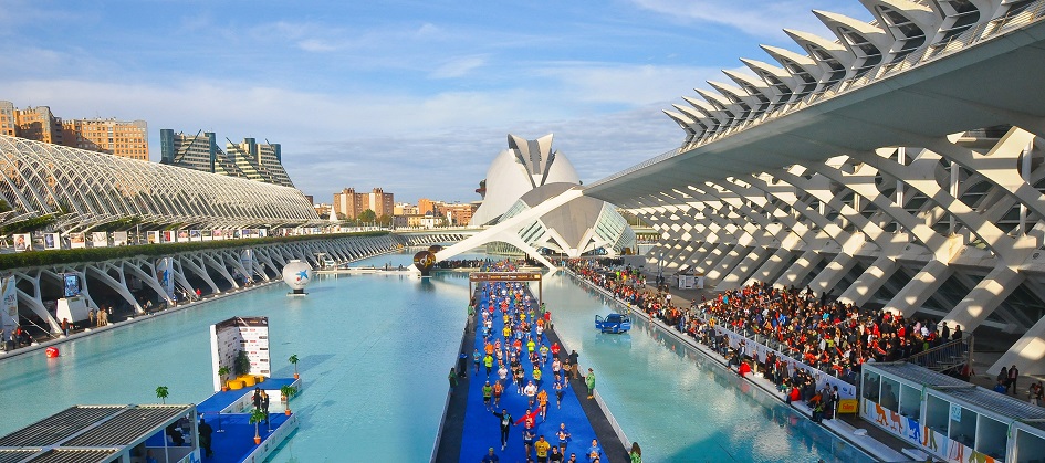 | Valensijas maratonā ir arī viena no īpašākajām maratonu finiša taisnēm, kur pēdējie 200 metri jāskrien pa speciāli maratonam virs ūdens uzbūvētu platformu |